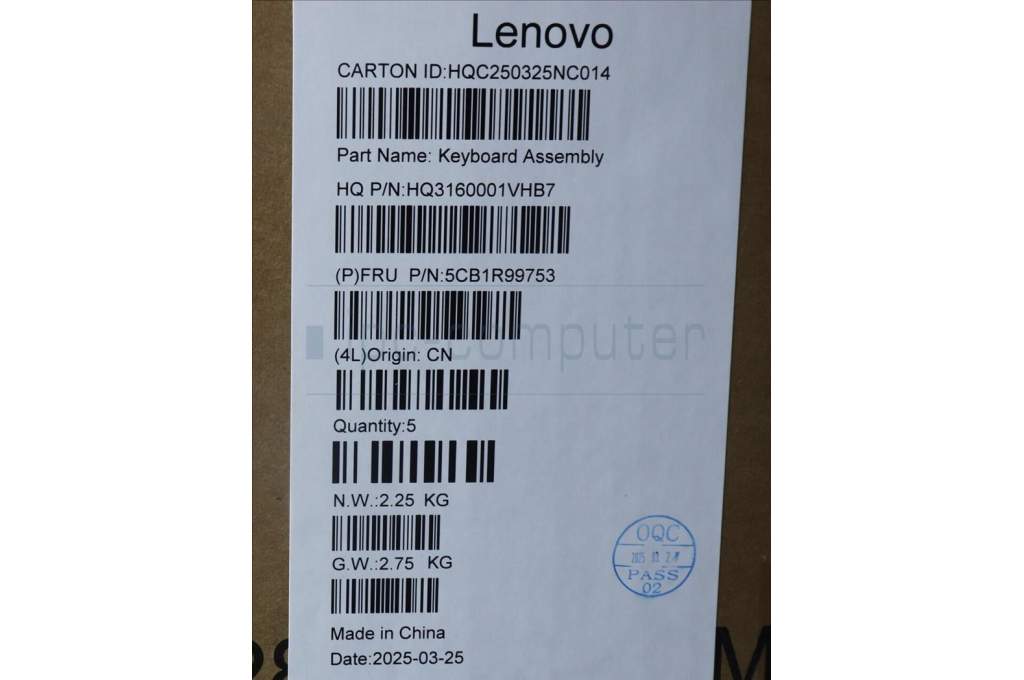 Lenovo 5CB1R99753 C-Cover with keyboard, Hebrew, Seashell, Non-FingerPrint, Puresight Logo, US
