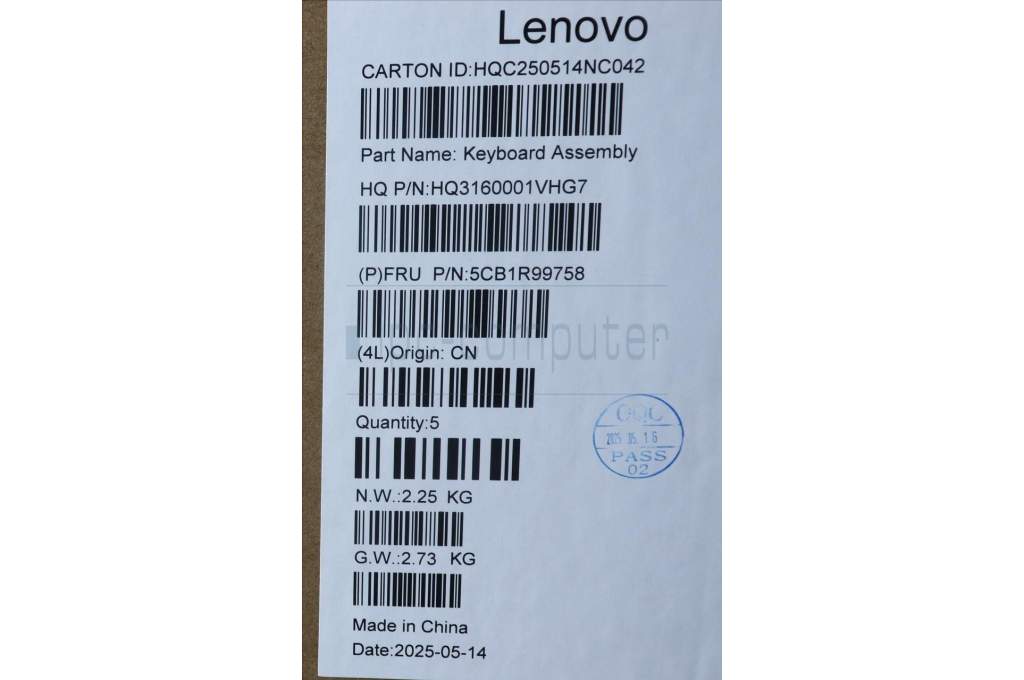 Lenovo 5CB1R99758 C-Cover with keyboard, German, Seashell, Non-FingerPrint, Non-Puresight Logo, UK