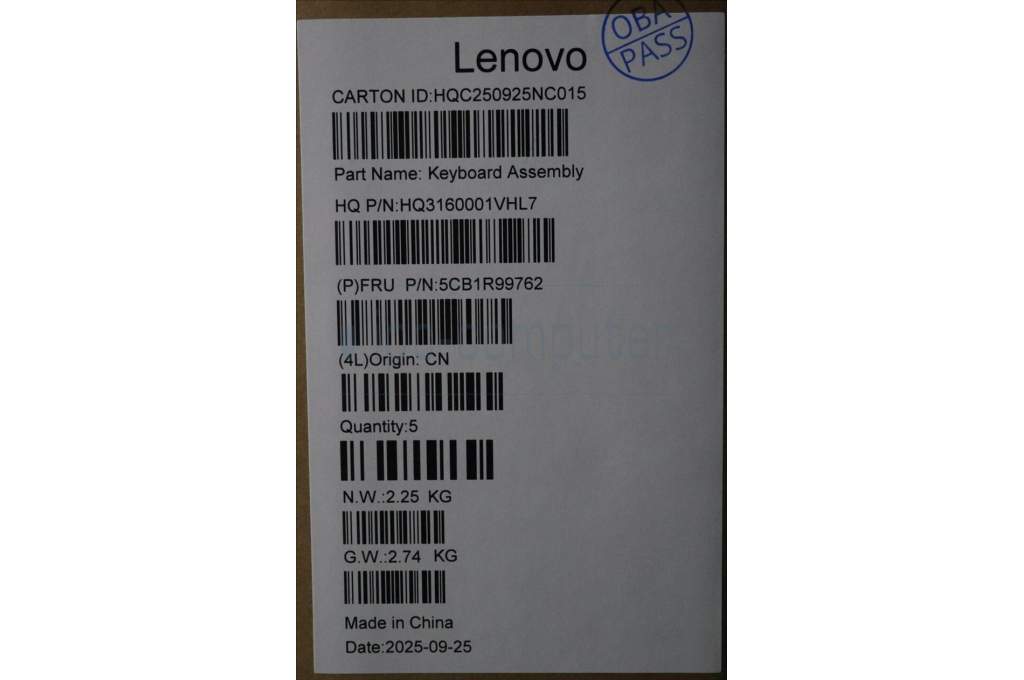 Lenovo 5CB1R99762 C-Cover with keyboard, Nordic, Seashell, Non-FingerPrint, Non-Puresight Logo, UK