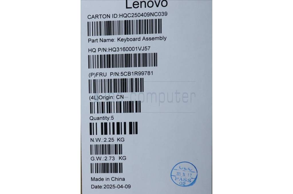 Lenovo 5CB1R99781 C-Cover with keyboard, US English Euro, Seashell, Non-FingerPrint, Puresight Logo, US