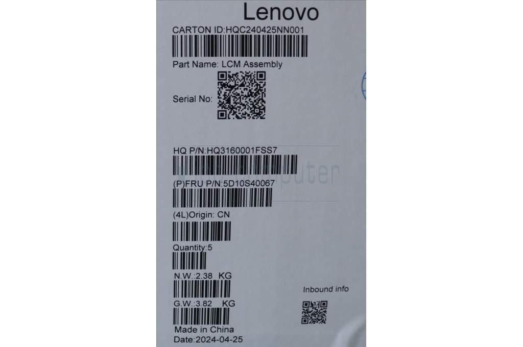 Lenovo 5D10S40067 Lenovo LCD Module,14.5",WQXGA+,Glare,OLED,400nit,100%DCI-P3