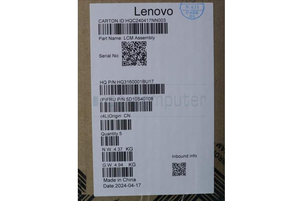 Lenovo 5D10S40108 Lenovo LCD Module,16",2K,Touch,Glare,OLED,400nit,100%DCI-P3