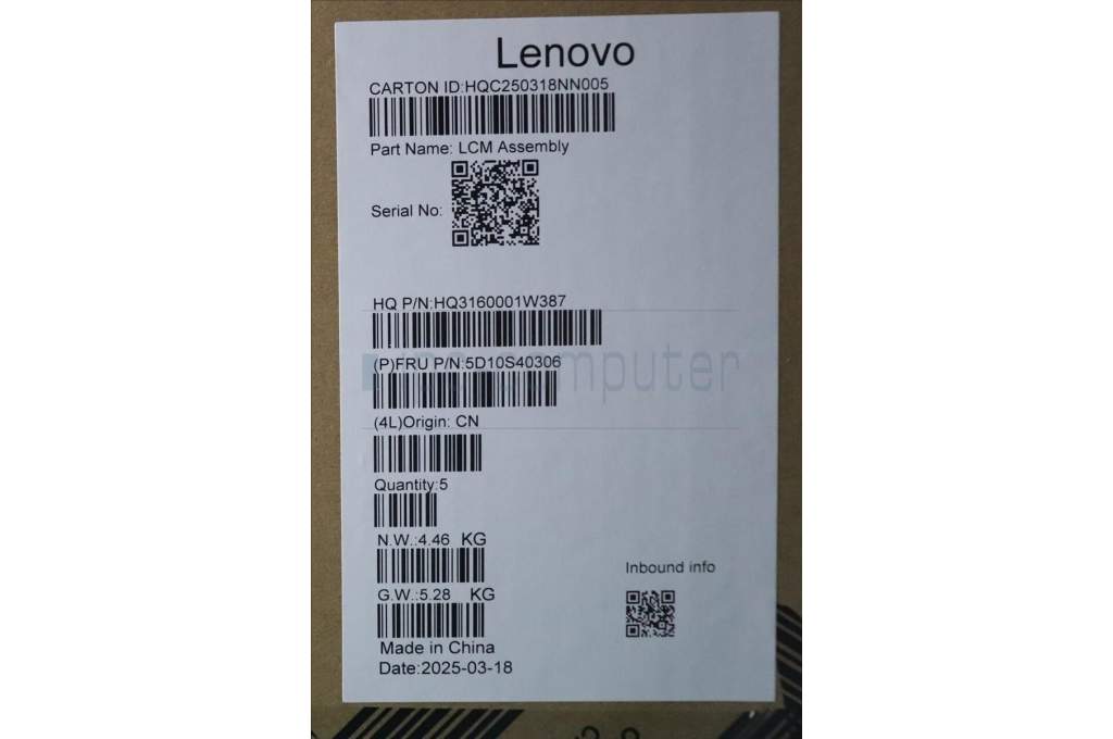 Lenovo 5D10S40306 Lenovo LCD Module, 16", WUXGA, Touch, Glare, IPS, 300nit, 45%NTSC, Cosmic Blue
