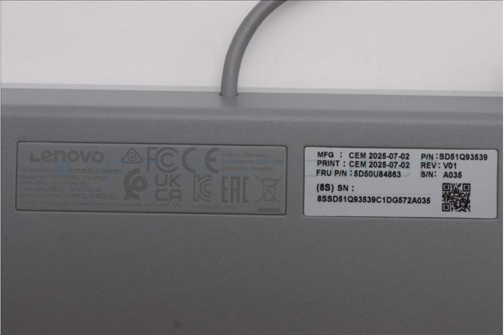 Lenovo 5D50U84863 Keyboard External, USB, US English, Cloud Grey