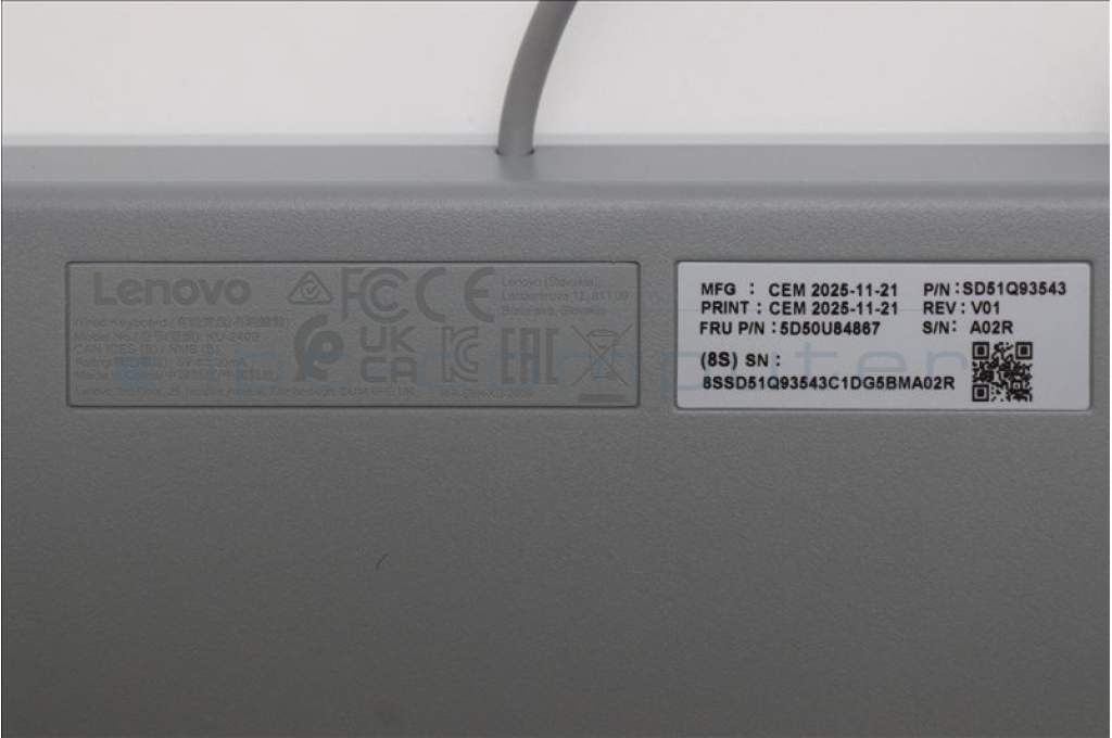 Lenovo 5D50U84867 Keyboard External, USB, Belgium English, Cloud Grey