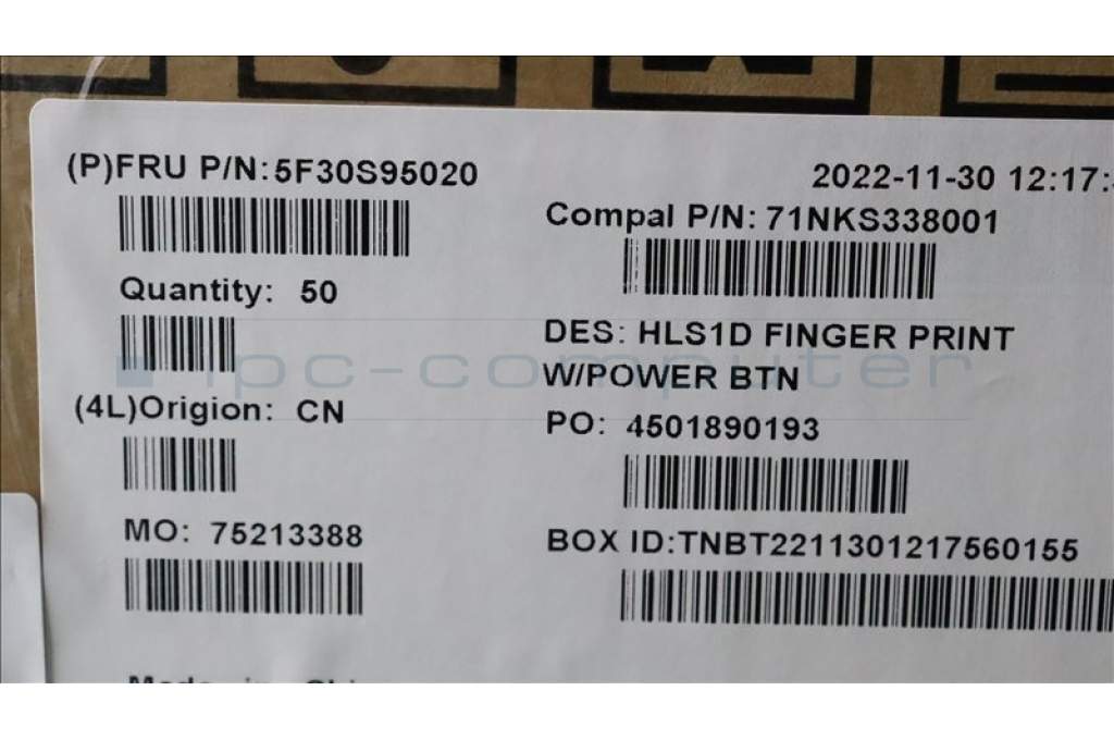 Lenovo 5F30S95020 FP BD C 82VG w/power btn&FFC