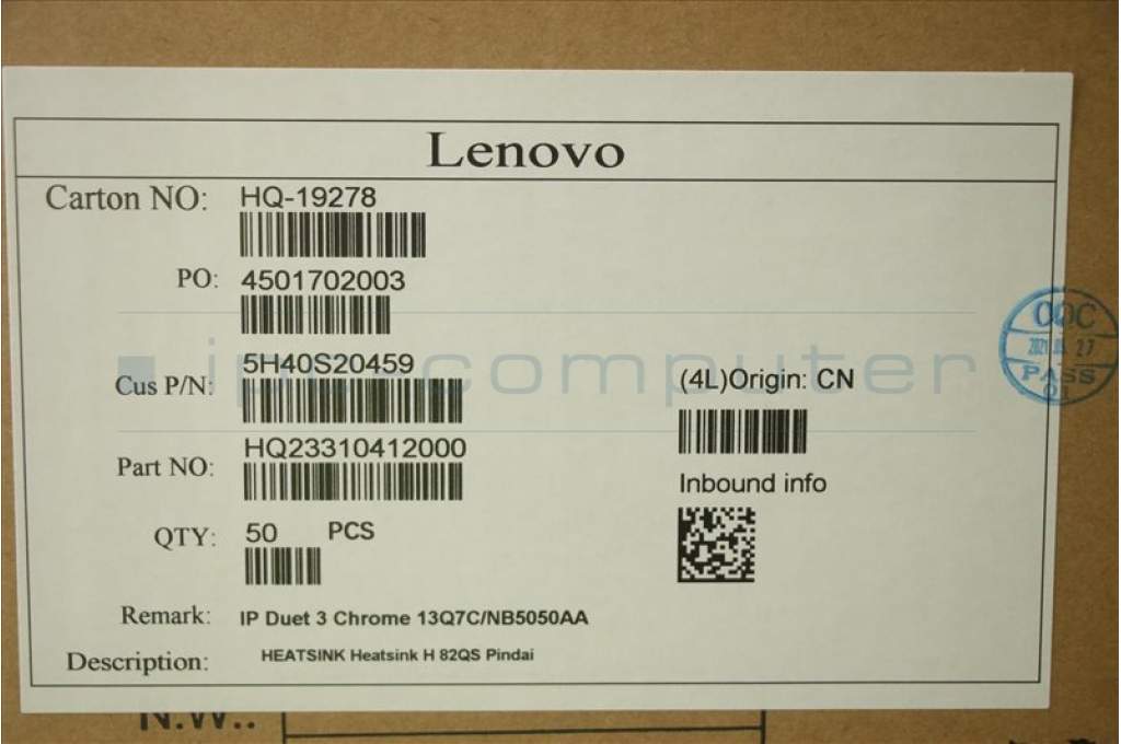 Lenovo 5H40S20459 Heatsink H 82QS Pindai