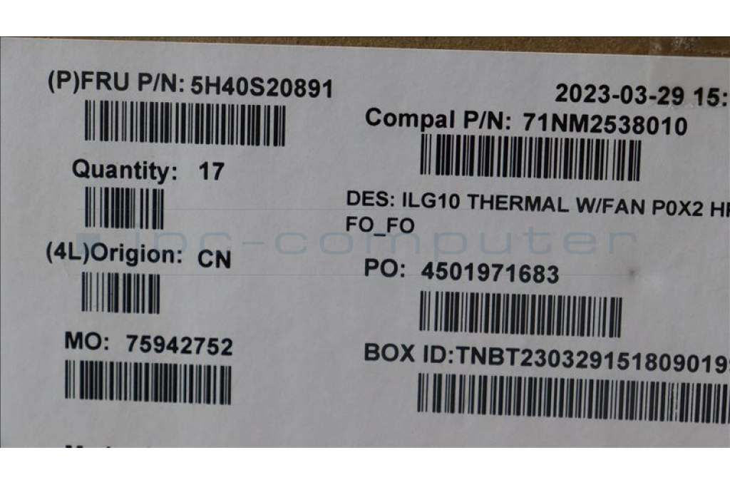 Lenovo 5H40S20891 Thermal Module 82XV FOFO P0X2