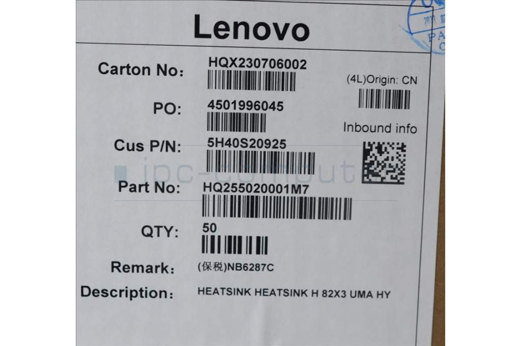 Lenovo 5H40S20925 HEATSINK H 82X3 UMA HY