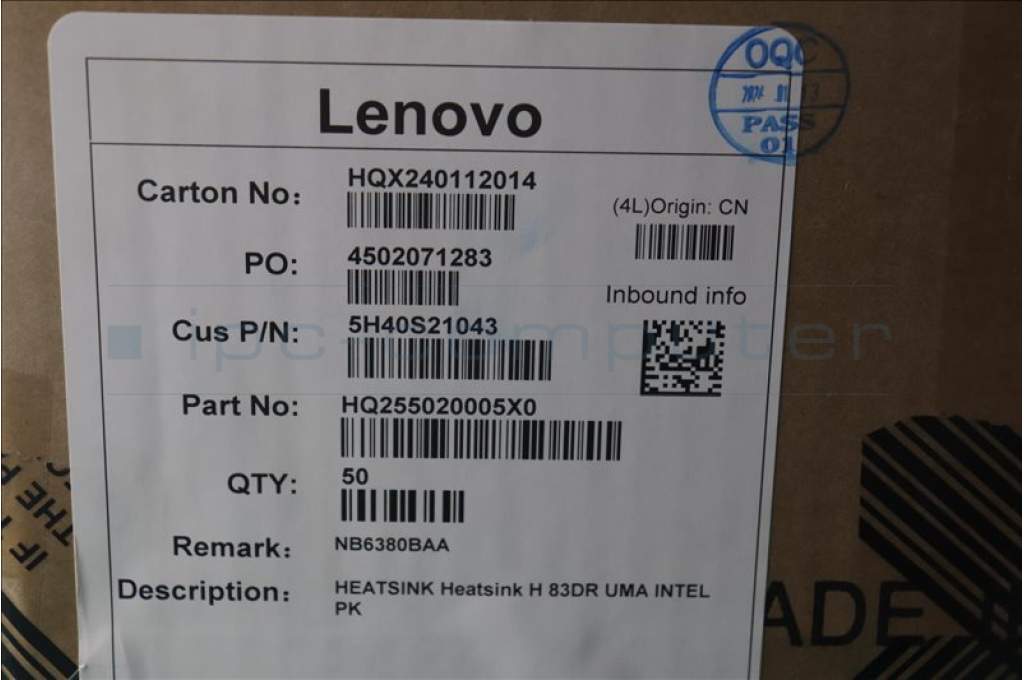 Lenovo 5H40S21043 Heatsink H 83DR UMA INTEL PK