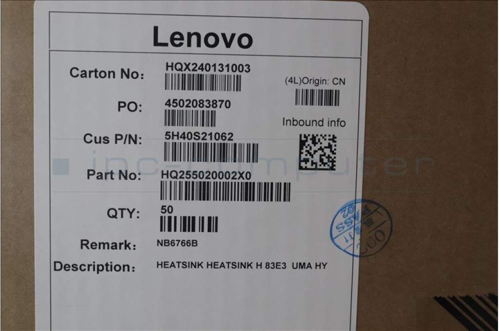 Lenovo 5H40S21062 HEATSINK H 83E3 UMA HY