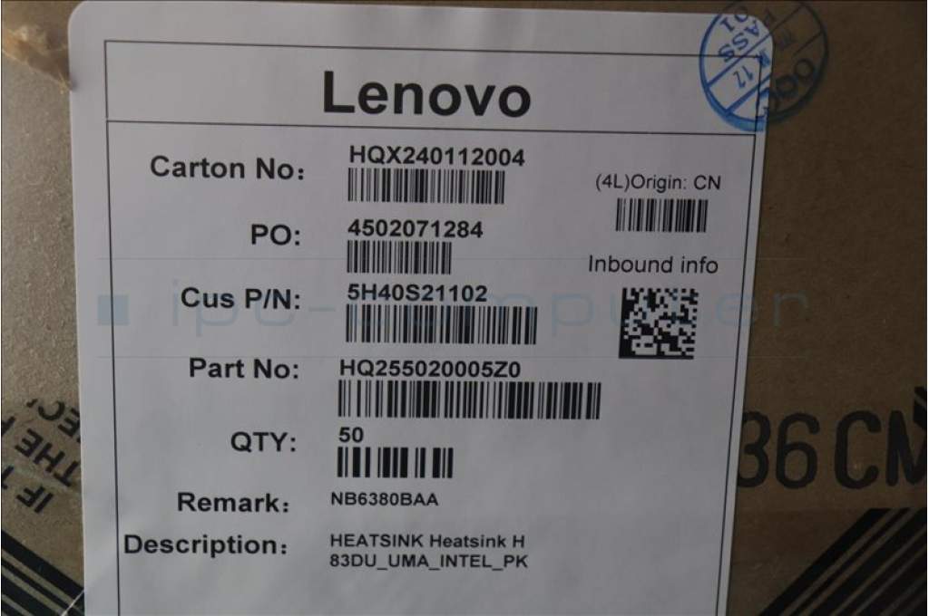 Lenovo 5H40S21102 Heatsink H 83DU_UMA_INTEL_PK