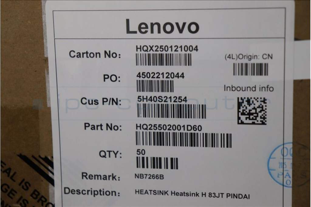 Lenovo 5H40S21254 Heatsink H 83JT PINDAI