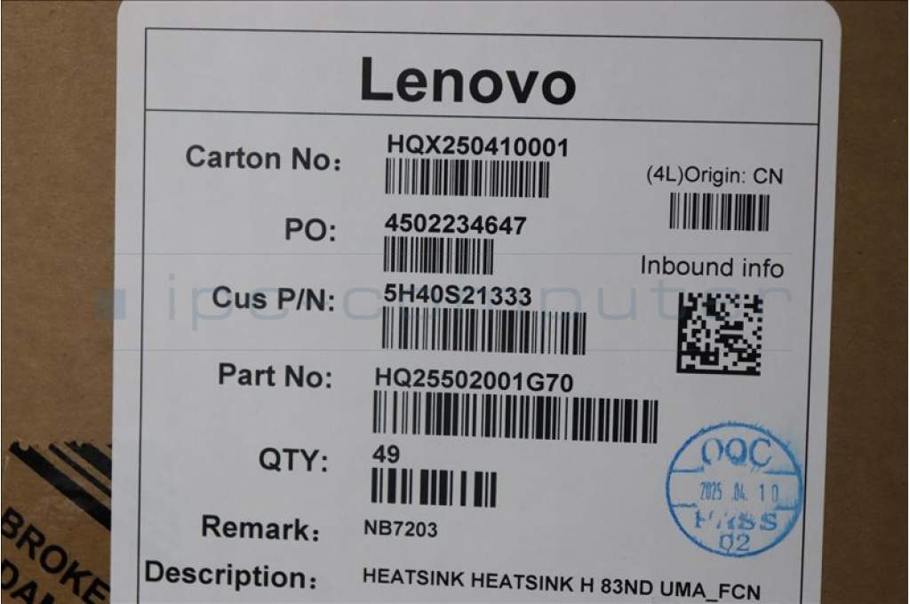 Lenovo 5H40S21333 HEATSINK H 83ND UMA_FCN