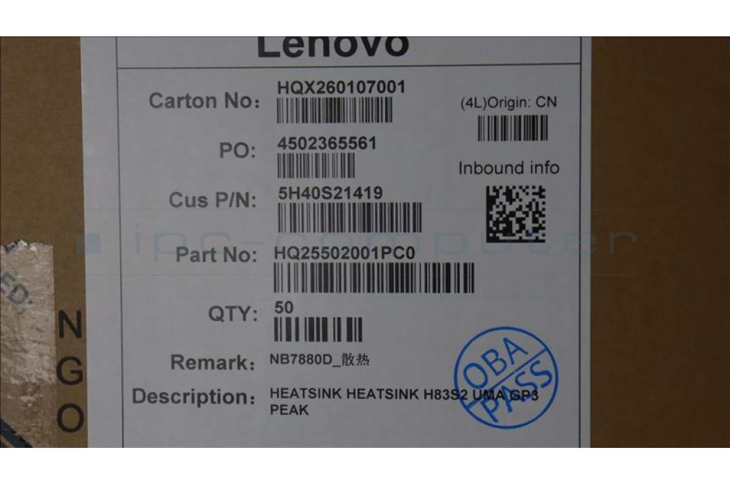 Lenovo 5H40S21419 HEATSINK H83S2 UMA GP3 PEAK