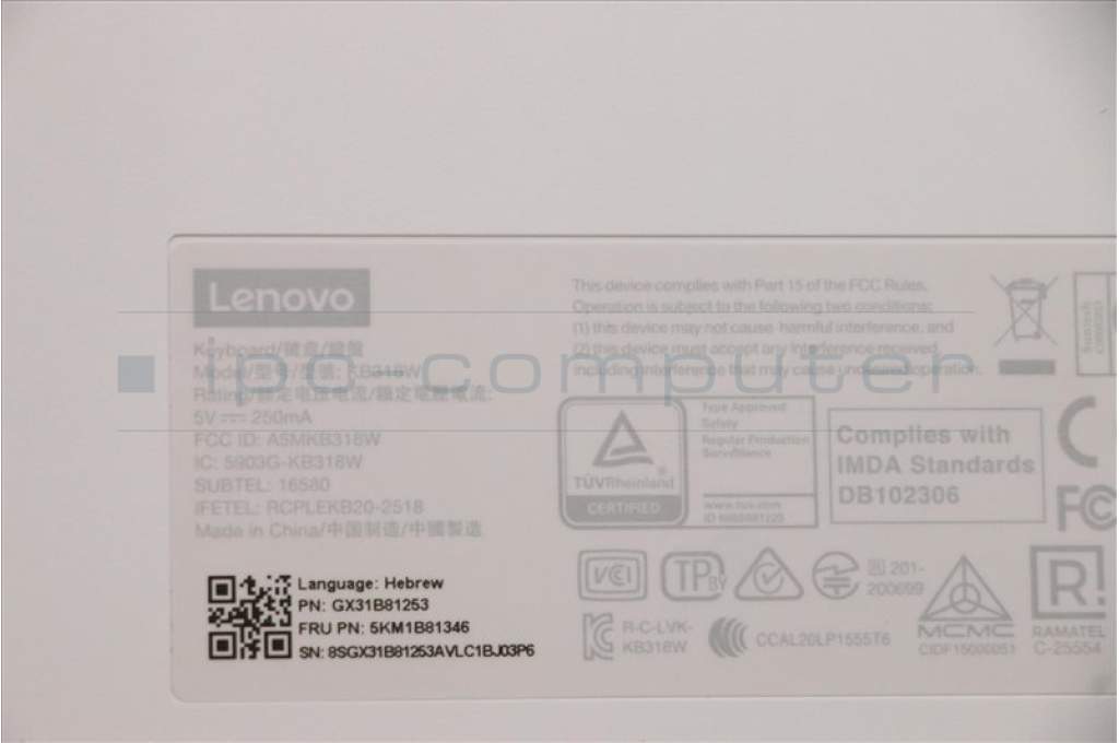 Lenovo 5KM1B81346 Keyboard_Mouse,Wireless,Hebrew,Cloud Grey