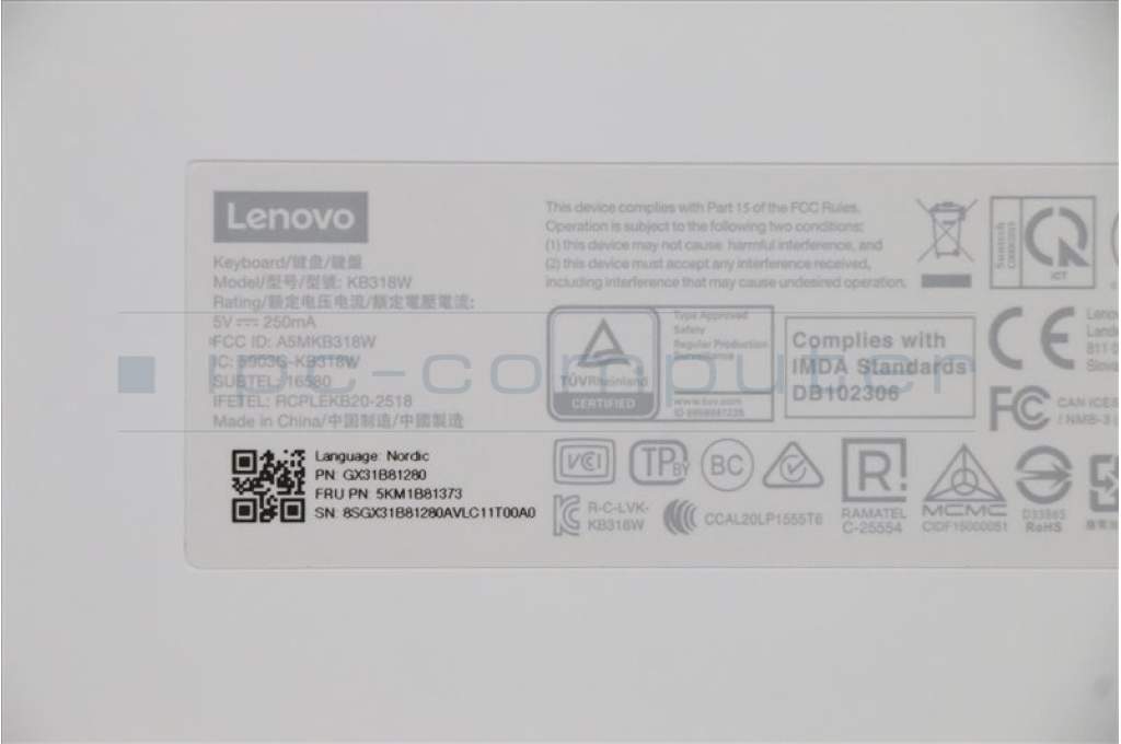 Lenovo 5KM1B81373 Keyboard_Mouse,Wireless,Nordic,Cloud_Grey,Non_Backlight