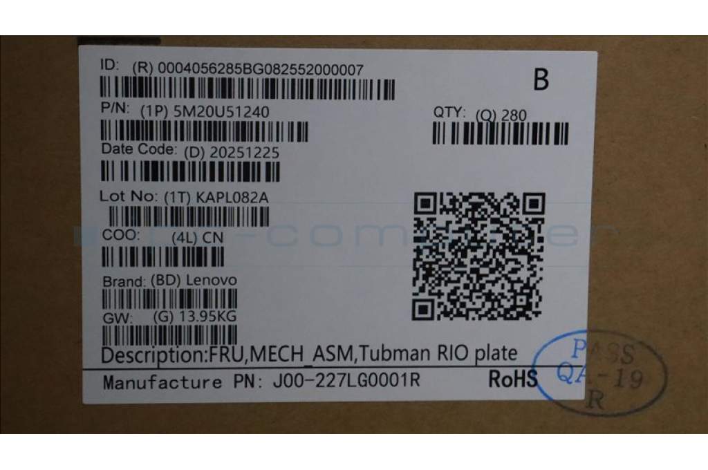 Lenovo 5M20U51240 FRU,MECH_ASM,Tubman RIO plate