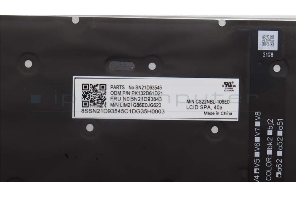 Keyboard Internal, Spanish, Backlight, w/Number, UK