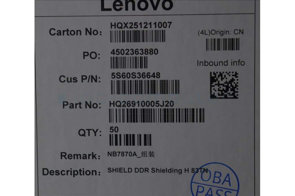 Lenovo 5S60S36648 DDR Shielding H 83TN
