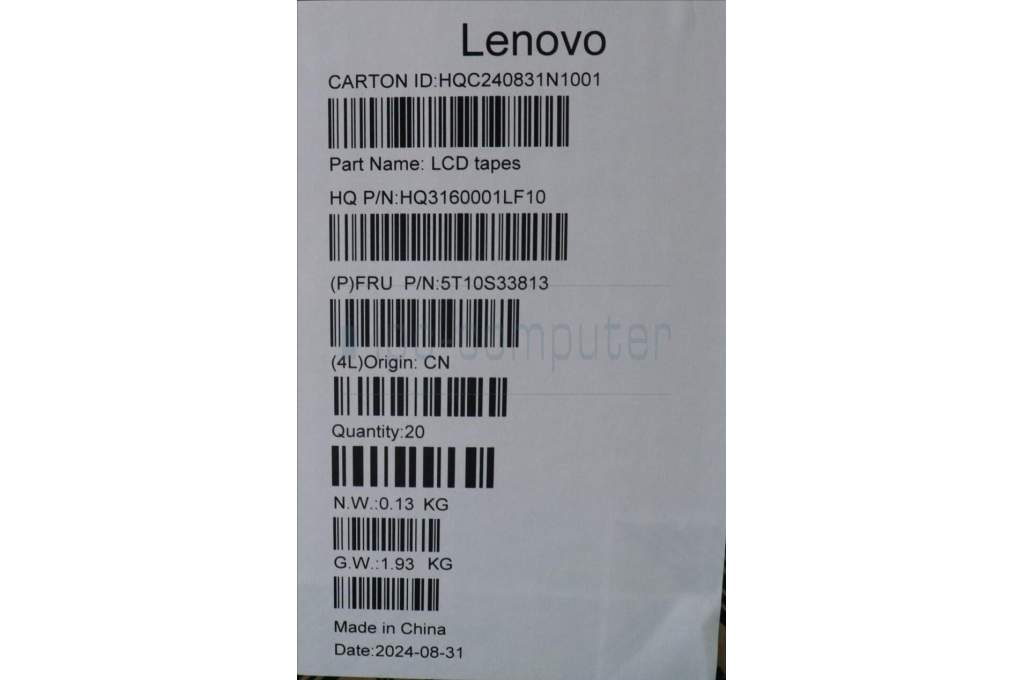 Lenovo 5T10S33813 Removable Tape H 21NH (L+R) 1080P*5