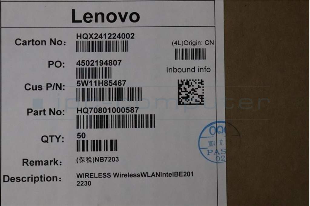 Lenovo 5W11H85467 Wireless,WLAN,Intel,BE201 2230