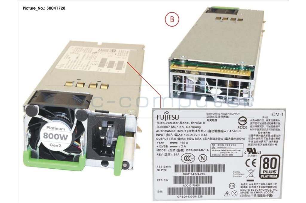 Modulare SV 800W platinum hp SV-Modul benötigt Netzleitung (18620) für TX2550M5, RX2520M5, RX2530M5, RX2540M5, und Vorgängermodelle Es kann sich um Bulkware handeln S26113-F574-L13
