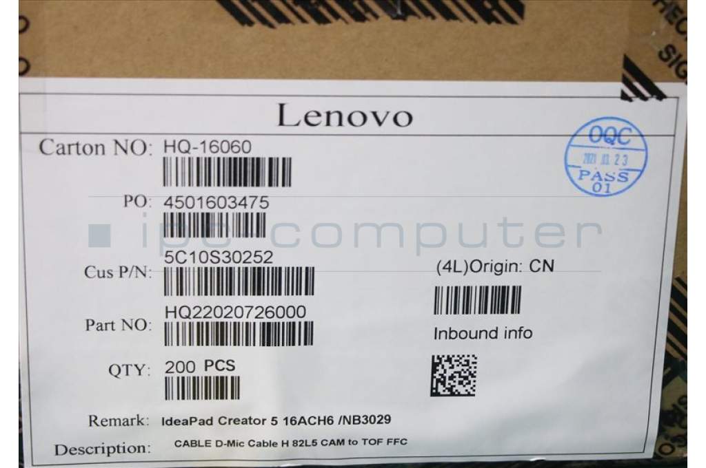 Lenovo 5C10S30252 CABLE D-Mic Cable H 82L5 CAM to TOF FFC