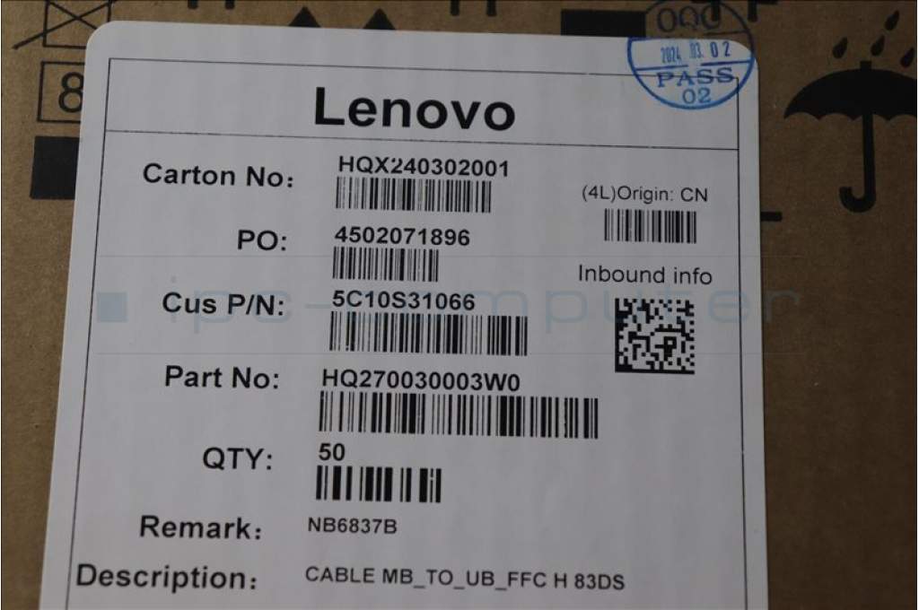 Lenovo 5C10S31066 CABLE MB_TO_UB_FFC H 83DS