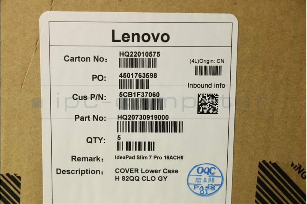 Lenovo 5CB1F37060 COVER Lower Case H 82QQ CLO GY