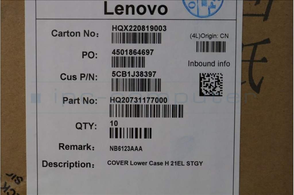 Lenovo 5CB1J38397 COVER Lower Case H 21EL STGY