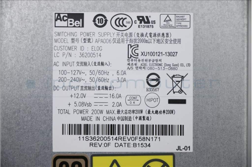 Lenovo 36002045 Acbel APA006-EL0G ES5.0 200w PSU(R)