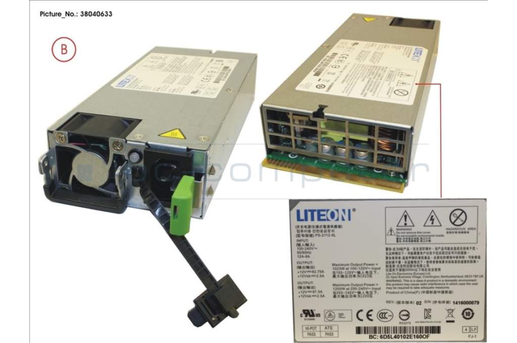 Fujitsu S26113-F5295-L120 POWER SUPPLY MODULE 1200W W/O POWER CORD