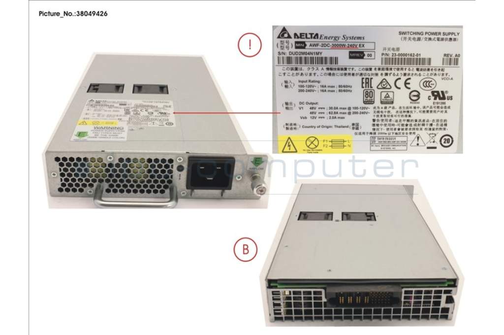Fujitsu S26361-F5643-L320 FRU,1 240V AC POWER SUPPLY,3000W,NPE