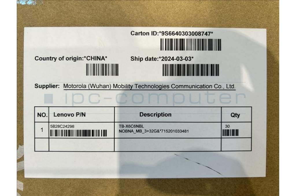 Lenovo 5B28C24298 TB-X6C6NBL NOBNA_MB_3+32G&*715201033481