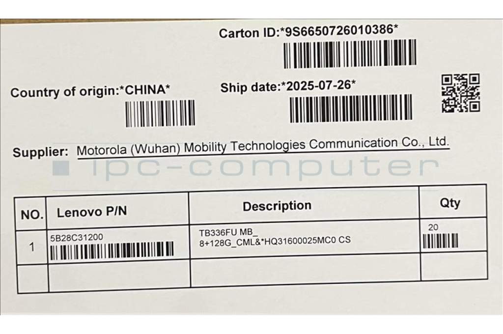 Lenovo 5B28C31200 TB336FU MB_ 8+128G_CML&*HQ31600025MC0 CS
