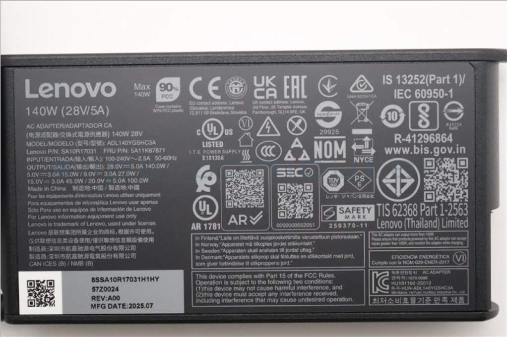 Lenovo 5A11K67871 USB-C Netzteil PD,140W,28/20~5V,3P,WW,HTK