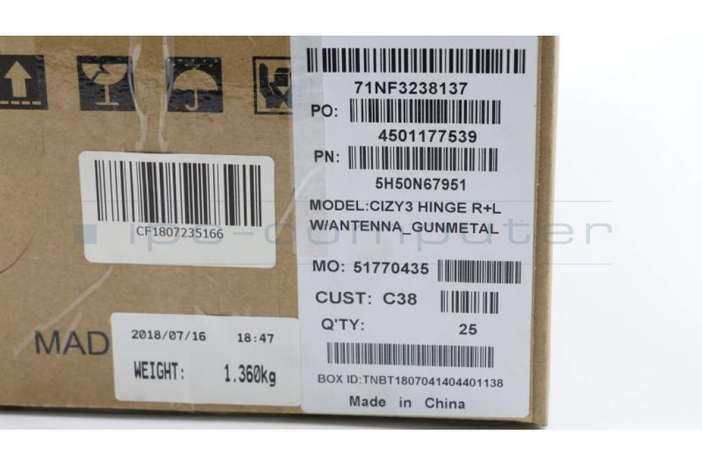 Lenovo 5H50N67951 Scharnier Scharnier C 80X6 W/ANT R+L GunMetal