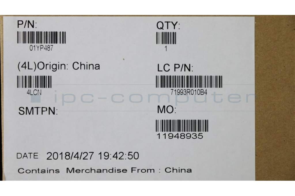 Lenovo 01YP487 NB_KYB FRU COMO FL,SRX,KB,BK,BG