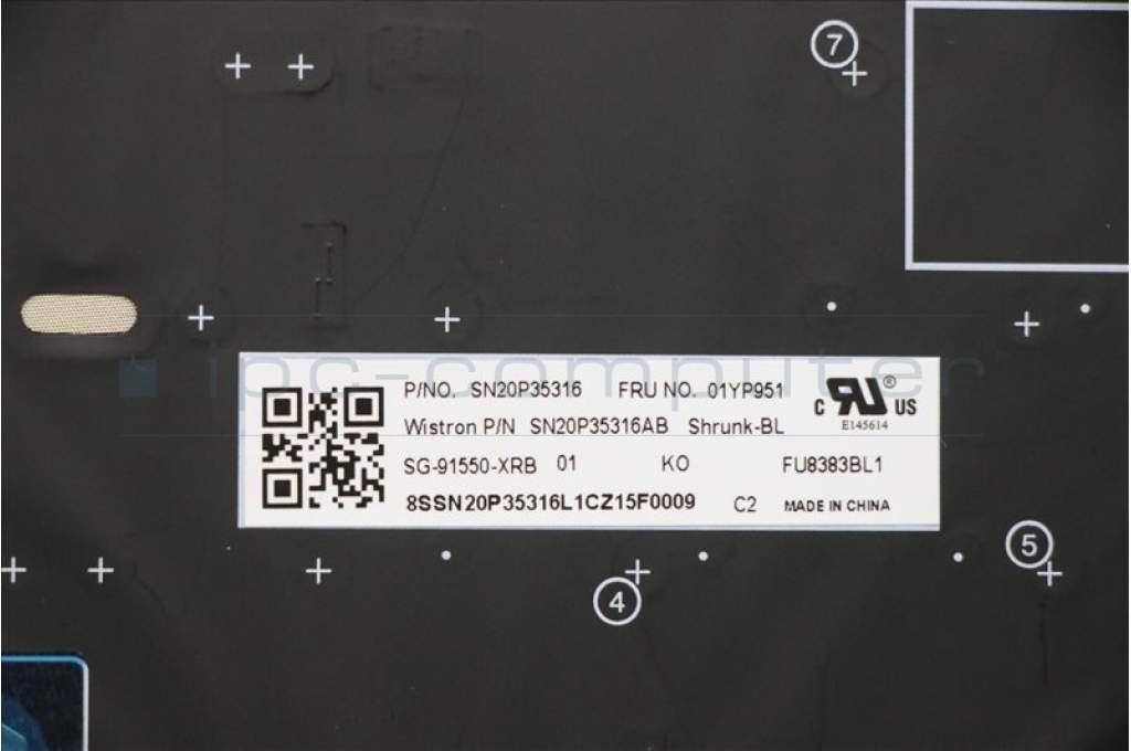 Lenovo 01YP951 NB_KYB FRU COMO SK,LTN,KB-BL,SV,KR