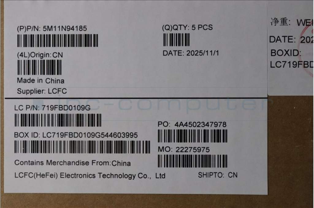 Lenovo 5M11N94185 MECH_ASM FRU KB GRE BL(CHY)US Bk